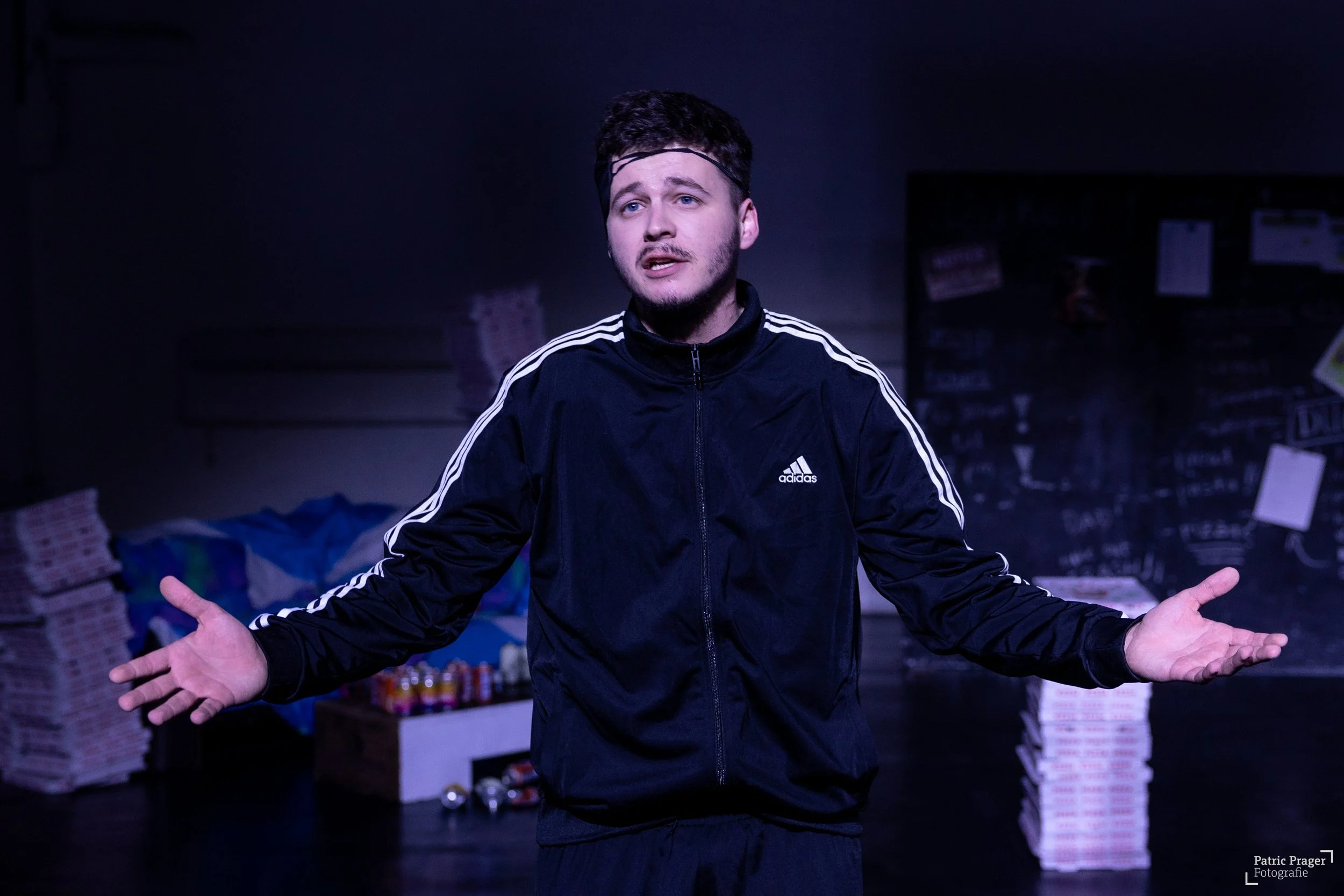 „Eine Mitarbeiterin des Jugendamts hat einen Hausbesuch angekündigt, um zu schauen, wie es so läuft bei Duck und ihrem alleinerziehenden Vater Duke. Die kurze Antwort: katastrophal. Duke (gespielt von Marc Alexander, der den rülpsenden Proll urkomisch mimt) leidet nicht nur unter immer schlimmeren Schüben von Multipler Sklerose, sondern auch unter Computerspiel- und Marihuanasucht.“